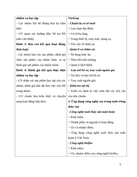 - Hệ thống hóa được các kiến thức cơ bản về công nghệ nuôi thủy sản.