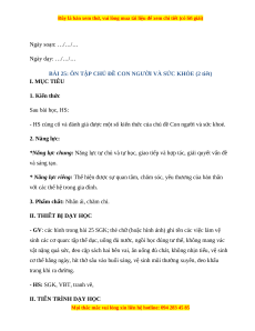 - HS củng cố và đánh giá được một số kiến thức của chủ đề Con người và sức khoẻ. 2. Năng lực: