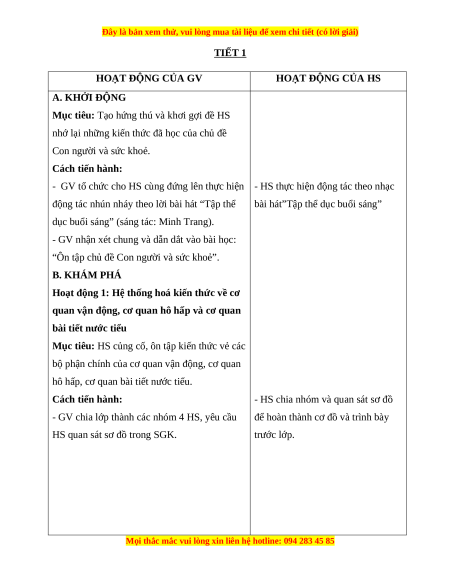 TIẾT 1 HOẠT ĐỘNG CỦA GV HOẠT ĐỘNG CỦA HS A. KHỞI ĐỘNG