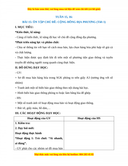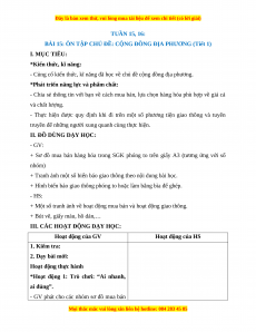 BÀI 15: ÔN TẬP CHỦ ĐỀ: CỘNG ĐỒNG ĐỊA PHƯƠNG (Tiết 1) I. MỤC TIÊU: