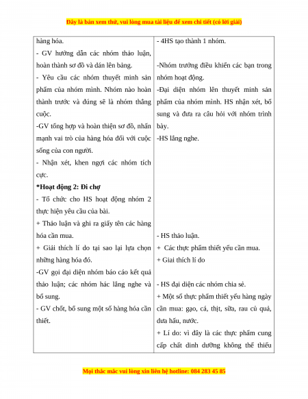- GV chốt, bổ sung một số hàng hóa cần cần mua: gạo, cá, thịt, sữa, rau củ quả, thiết. dưa hấu, nước.