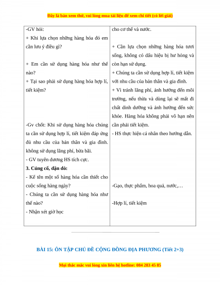 -Gv chốt: Khi sử dụng hàng hóa chúng cần phải tiết kiệm.