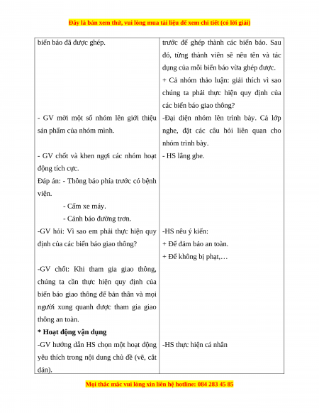+ Hình biển báo giao thông phóng to hoặc làm bằng bìa để ghép.
