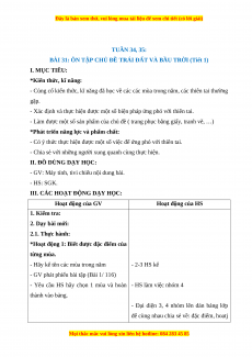 BÀI 31: ÔN TẬP CHỦ ĐỀ TRÁI ĐẤT VÀ BẦU TRỜI (Tiết 1) I. MỤC TIÊU: