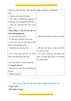 BÀI 31: ÔN TẬP CHỦ ĐỀ TRÁI ĐẤT VÀ BẦU TRỜI (Tiết 2+3)