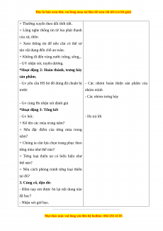 - Gv yêu cầu HS bỏ đồ dùng đã chuẩn bị - Các nhóm hoàn thiện sản phẩm của trước nhóm mình - Các nhóm trưng bày