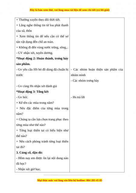 - Củng cố kiến thức, kĩ năng đã học về các các mùa trong năm, các thiên tai thường gặp.