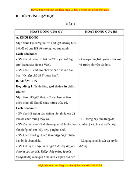 học: “Ôn tập chủ đề Trường học”. B. KHÁM PHÁ