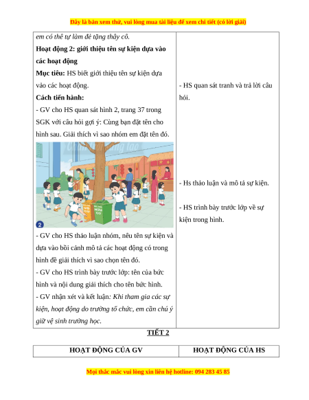 Hoạt động 2: giới thiệu tên sự kiện dựa vào các hoạt động
