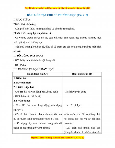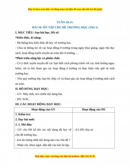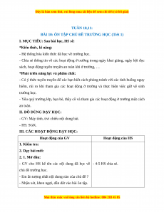 BÀI 10: ÔN TẬP CHỦ ĐỀ TRƯỜNG HỌC (Tiết 2+3) I. MỤC TIÊU: