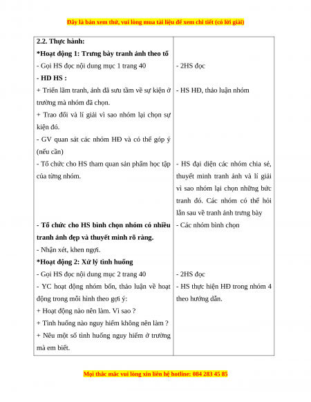 - Gọi HS đọc nội dung mục 2 trang 40 - 2HS đọc