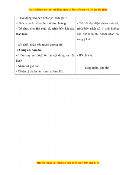 - Tổ chức cho HS chia sẻ, trình bày kết quả trình bày cách xử lí tình huống thảo luận.
