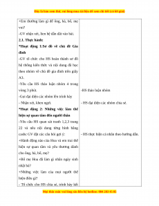 - Trân trọng, yêu quý gia đình và thể hiện được sự quan tâm , chăm sóc, yêu