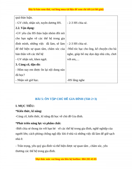BÀI 5: ÔN TẬP CHỦ ĐỀ GIA ĐÌNH (Tiết 2+3) I. MỤC TIÊU: