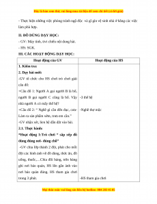 - GV: Máy tính, tivi chiếu nội dung bài.