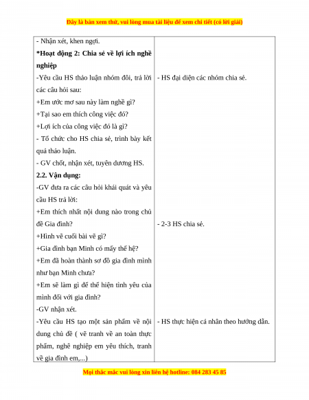 *Hoạt động 2: Chia sẻ về lợi ích nghề