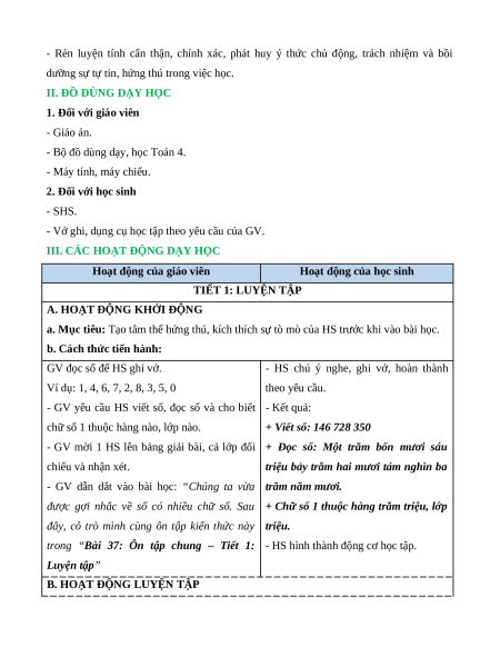 trong “Bài 37: Ôn tập chung – Tiết 1: - HS hình thành động cơ học tập. Luyện tập”