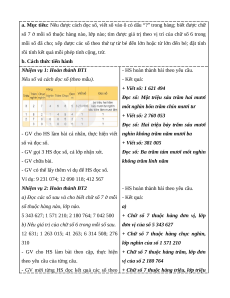 số 7 ở mỗi số thuộc hàng nào, lớp nào; tìm được giá trị theo vị trí của chữ số 6 trong