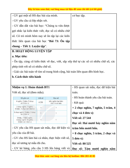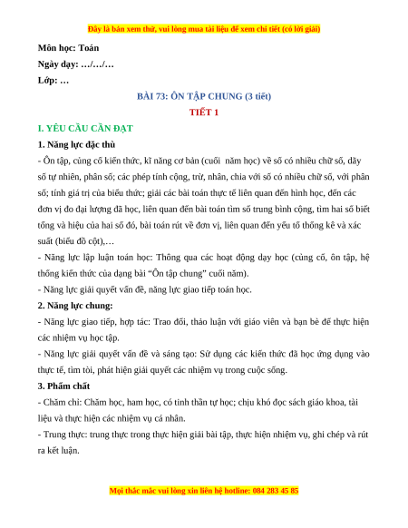 BÀI 73: ÔN TẬP CHUNG (3 tiết) TIẾT 1