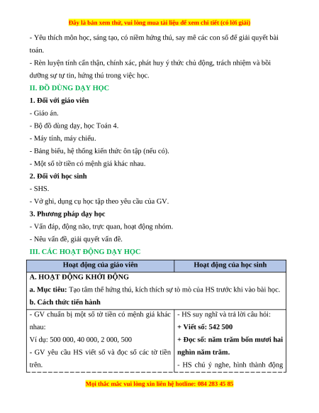 - Ôn tập, củng cố kiến thức, kĩ năng cơ bản (cuối năm học) về số có nhiều chữ số, dãy