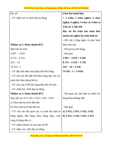 - Ôn tập, củng cố kiến thức về đọc, viết, sắp xếp thứ tự các số có nhiều chữ số, các