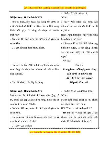 - Giải các bài toán về tìm số trung bình cộng, bài toán liên quan đến hình học.