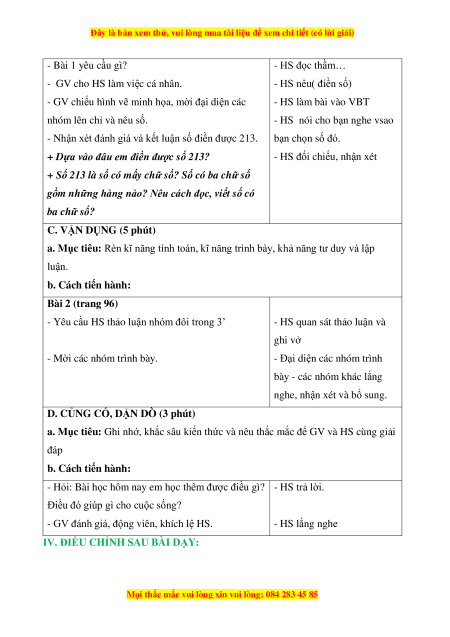 + Dựa vào đâu em điền được số 213?