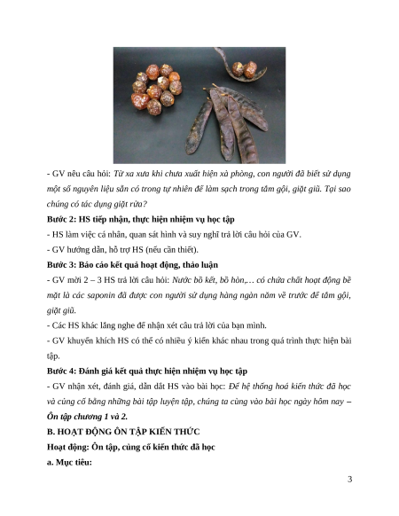 - GV mời 2 – 3 HS trả lời câu hỏi: Nước bồ kết, bồ hòn,… có chứa chất hoạt động bề