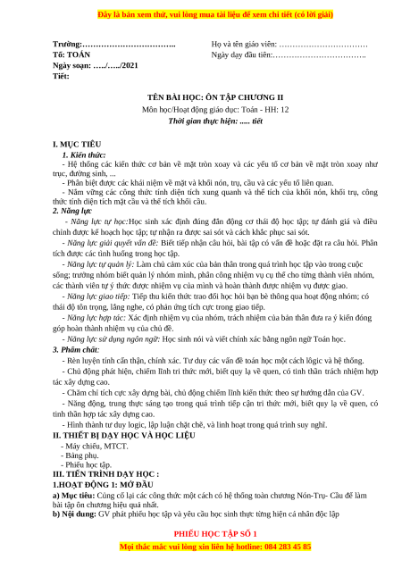 - Hệ thống các kiến thức cơ bản về mặt tròn xoay và các yếu tố cơ bản về mặt tròn xoay như trục, đường sinh, ...