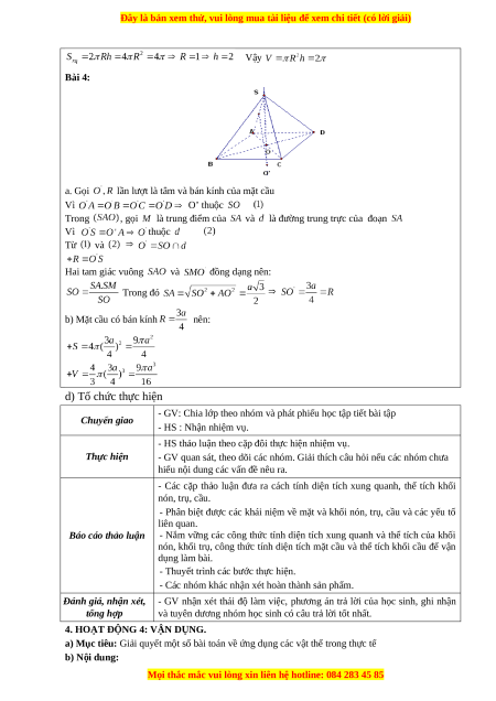 và là đường trung trực của đoạn Vì thuộc Từ và Hai tam giác vuông và đồng dạng nên: Trong đó b) Mặt cầu có bán kính nên: d) Tổ chức thực hiện