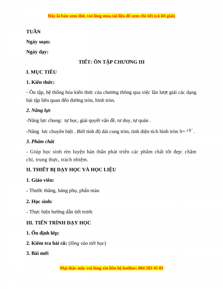 TIẾT: ÔN TẬP CHƯƠNG III I. MỤC TIÊU