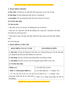 HOẠT ĐỘNG CỦA GV VÀ HS SẢN PHẨM SỰ KIẾN
