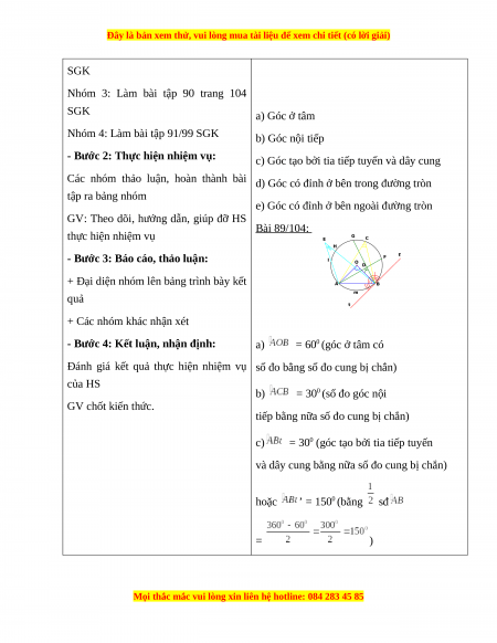 Nhóm 3: Làm bài tập 90 trang 104 SGK a) Góc ở tâm