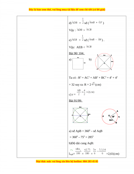 các dạng bài tập liên quan đến đường tròn, hình tròn