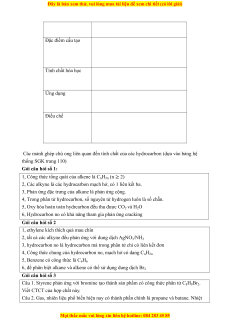 Các mảnh ghép chú ong liên quan đến tính chất của các hydrocarbon (dựa vào bảng hệ thống SGK trang 110) Gói câu hỏi số 1: