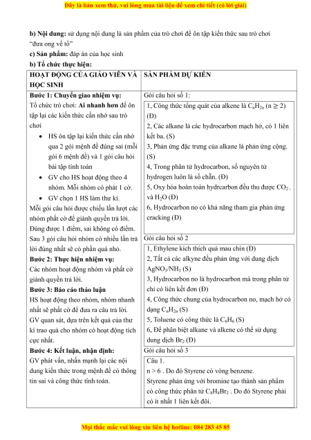 Đây là bản xem thử, vui lòng mua tài liệu để xem chi tiết (có lời giải) d) Tổ chức thực hiện: