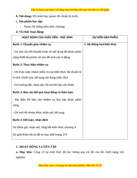 b. Nội dung: HS trình bày poster đã chuẩn bị trước
