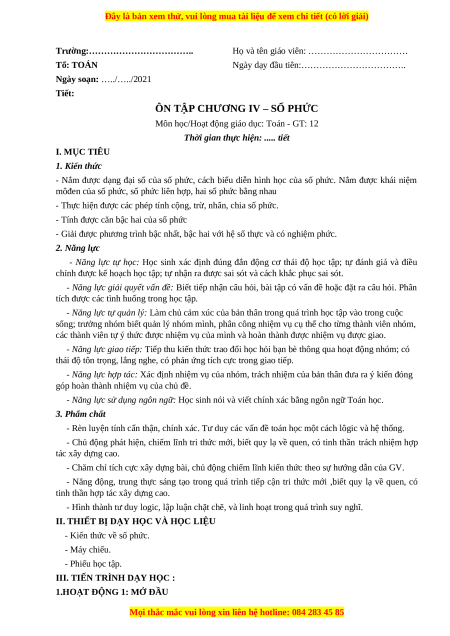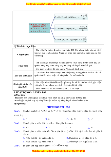 - Thực hiện được các phép tính cộng, trừ, nhân, chia số phức.
