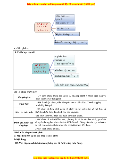 a) Mục tiêu: Ôn tập lại các phép toán số phức. b)Nội dung: