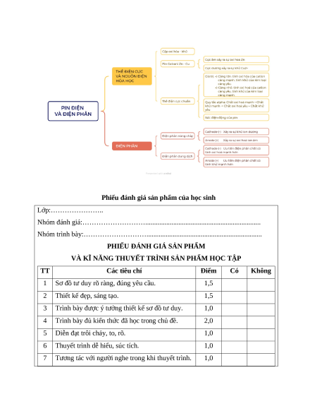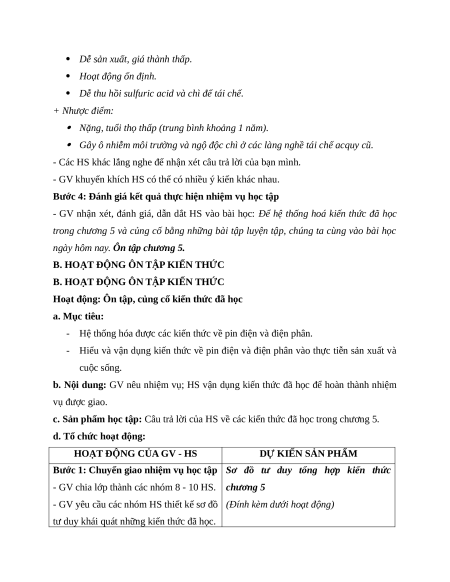 - Vận dụng kiến thức, kĩ năng đã học: Hệ thống hoá được kiến thức về pin điện