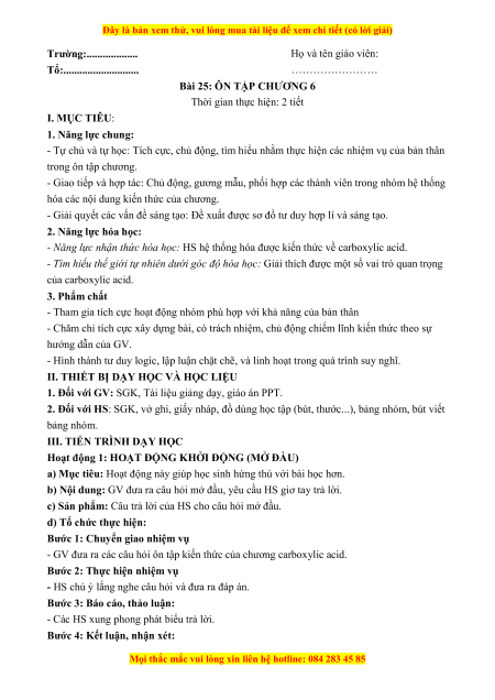 Đây là bản xem thử, vui lòng mua tài liệu để xem chi tiết (có lời giải) Trường:................... Họ và tên giáo viên: