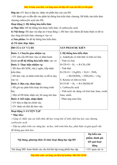 - Năng lực nhận thức hóa học: HS hệ thống hóa được kiến thức về carboxylic acid.