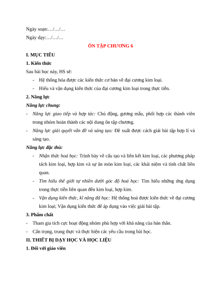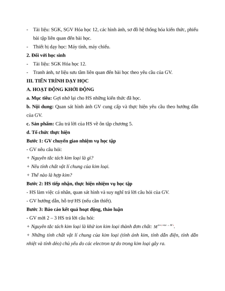 - Hiểu và vận dụng kiến thức của đại cương kim loại trong thực tiễn. 2. Năng lực