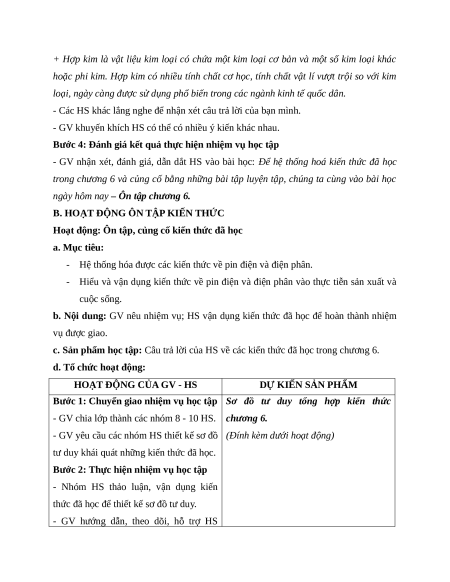 - Nhận thức hoá học: Trình bày về cấu tạo và liên kết kim loại, các phương pháp