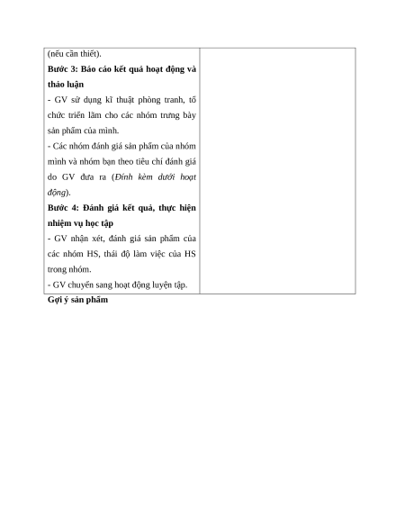 Bước 3: Báo cáo kết quả hoạt động, thảo luận