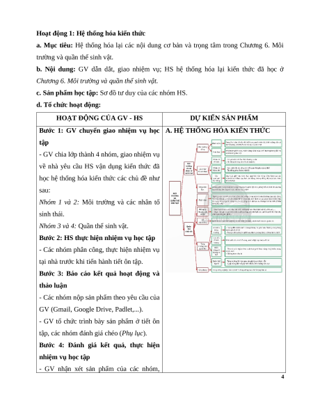 Ngày soạn:…/…/… Ngày dạy:…/…/… ÔN TẬP CHƯƠNG 6 I. MỤC TIÊU 1. Kiến thức Sau bài học này, HS sẽ: