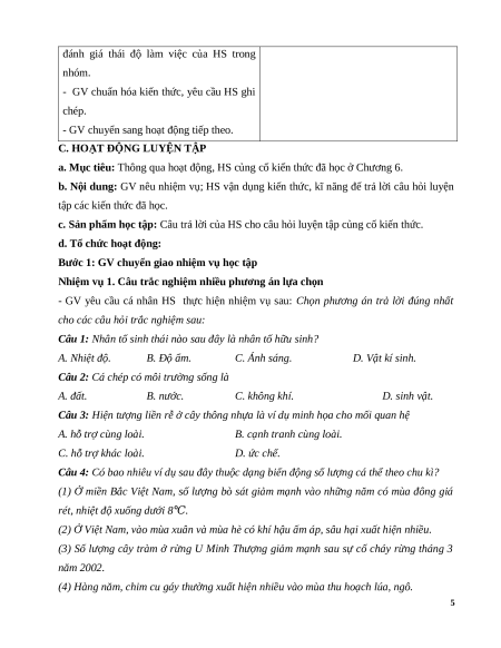 6 về các nhân tố sinh thái và quần thể sinh vật.