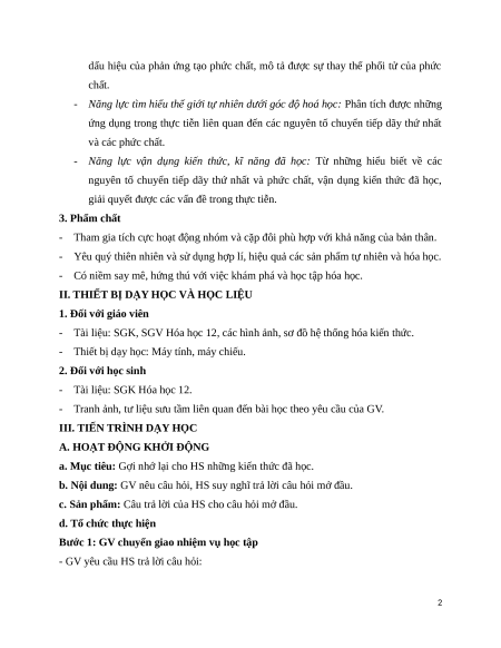 và phức chất để giải các bài tập liên quan. 2. Năng lực