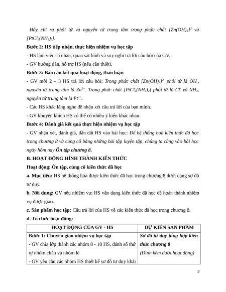 phức chất; Hoạt động nhóm và cặp đôi hiệu quả theo đúng yêu cầu của GV, đảm