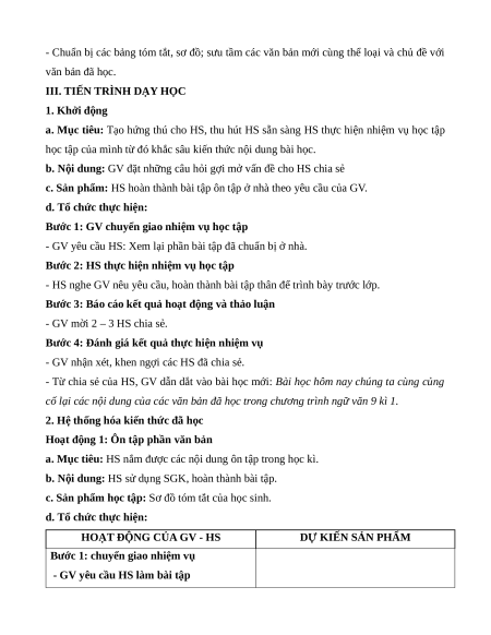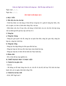 Giáo án Ngữ văn 9 chân trời sáng tạo – Bài Ôn tập cuối học kì 1 Ngày soạn:…/…/… Ngày dạy:…/…/…
